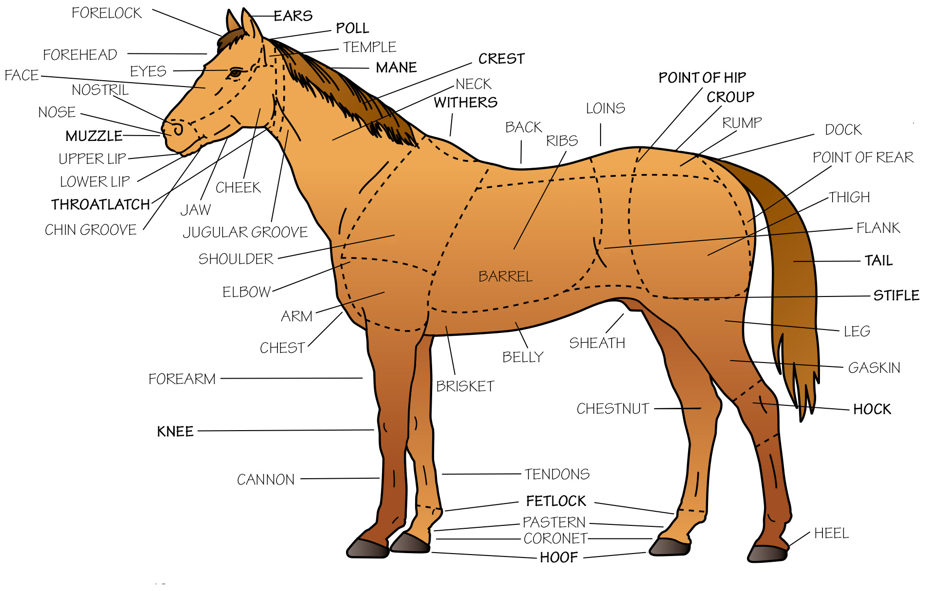 Name 10 parts of the saddle and bridle that you will use, and explain